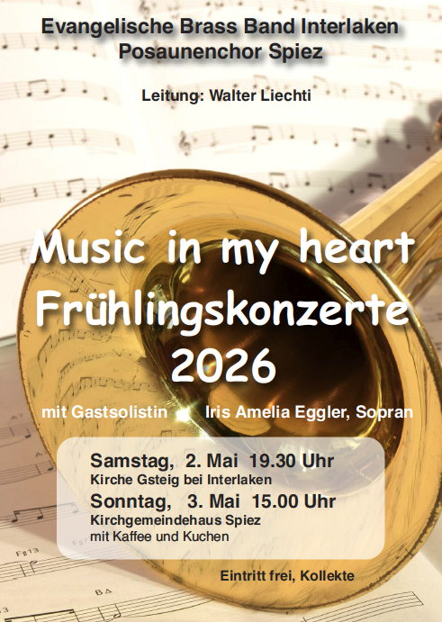 Endlich sind wieder Konzerte möglich, sogar ohne Masken. Werden die Besucher kommen? Der Dirigent der Evangelischen Brass Band Interlaken und des Posaunenchors Spiez, Walter Liechti, hat sich viele Gedanken gemacht, gesucht, geplant, geübt. Es soll fröhliche, lüpfige, besinnliche, leichte (und auch schwierigere) Musik als eine Art Maibummel werden. Eigene Talente sollen gefördert und den Besuchern ein Dankeschön für die Treue geboten werden. Zwar heisst es üben, üben, üben, aber Spass soll die Sache machen!